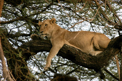 03.07.12 Queen Elizabeth NP Frühes Schimpansen-Trekking im Kyambura Gorge mit bester Chance Schimpansen zu finden. Am Nachmittag Pirschfahrt oder optional Wanderung im Maramagambo Forest oder Besuch des Lake Katwe. Übernachtung Queen Elisabeth Bush Lodge. Ü/F 04.07.12 Queen Elizabeth NP - Ishasha (97 km / 3 Std) Fahrt durch den Nationalpark in die südlichste und bekannteste Region Ishasha. Dieses Gebiet ist für eine große Ansammlung von Löwen bekannt. Pirschfahrt am Nachmittag. Übernachtung Savannah Resort. Ü/F